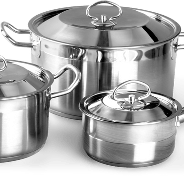 For cookware, always use good quality heavy pots and pans. Our preference is heavy duty stainless steel cookware, with comfortable handles. and well fitted lids.